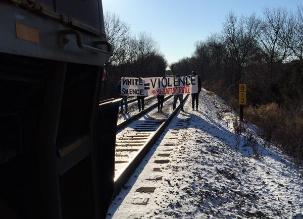 About 50 protesters congregated in a U.S. House of Representatives office cafeteria in Washington, D.C., chanting "Black Lives Matter" and taking over the space in front of the cash registers. They held signs reading "outlaw racial profiling" and "stop jump outs" and stayed on the floor for about four and a half minutes, recalling the four and a half hours that Brown's body remained face down in the street after he was shot.