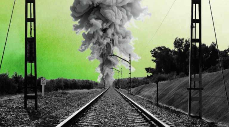 He wouldn’t have to wait long. Dozens of times a day, freight trains blare through East Palestine, cleaving the small Ohio town in two. The stretch of tracks on which Fowler sat was just a few hundred yards west of the site where two and a half years earlier, a Norfolk Southern train carrying tank cars full of toxic chemicals derailed and burned.