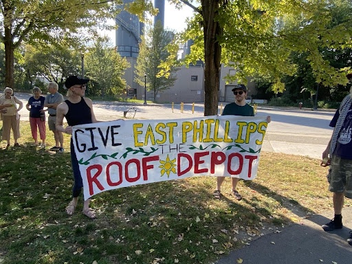 Minneapolis, MN – Climate Justice Committee and community members gathered for a family-friendly walk through Mayor Jacob Frey’s Northeast Minneapolis neighborhood on Saturday, October 4. The walk was called to raise awareness for the Roof Depot fight and urge Mayor Frey to give the East Philips neighborhood a fair deal for the site. Participants put up hundreds of posters, handed out flyers, and had conversations with community members. The walk was called by the Climate Justice Committee (CJC), a local activist group focused on fighting urban pollution and environmental racism in the Twin Cities. They have been active in the East Phillips neighborhood’s campaign to turn the old Roof Depot into an urban farm and community center.