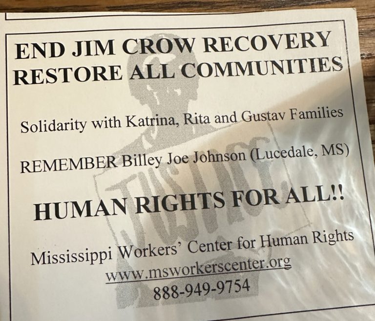 When I got the call, I was just leaving Magnolia Bar’s Summit at Tougaloo College. It was one of the courageous Ingalls Shipyard workers, whom I had the honor of representing in a race discrimination case. We were advised not to try to come back to the coast. Hurricane Katrina had touched down and the roads are blocked. Our clients packed up our hotel rooms and put our belongings in storage. What followed were harrowing calls and text messages, describing widespread loss of homes, deaths, evictions and injuries. The levies had broken! The sagging infrastructures gave way. Lives already hit hard from other storms and inequities, were once again embattled. It is no surprise that those who had very little to begin with, were the ones who were abandoned by the system.