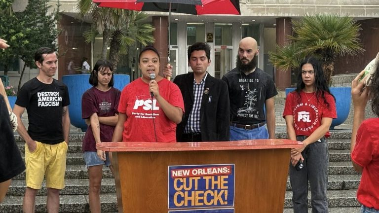This month marks 20 years since Hurricane Katrina devastated the southeastern United States, causing at least 1,392 deaths and an estimated USD 125 billion in damages, much of it concentrated in the Louisiana city of New Orleans. This year, Louisiana-based organizers are launching a grassroots campaign to demand that New Orleans utilize USD 600 million dollars in unused public funds for long-awaited repairs.  In 2015, the Federal Emergency Management Agency (FEMA) gave New Orleans nearly USD 2 billion for post-Katrina infrastructure repairs, but USD 600 million still hasn’t been used, according to organizers.  Organizers with the Party for Socialism and Liberation held a press conference on Friday, August 22, which was hit with a sudden rainfall.