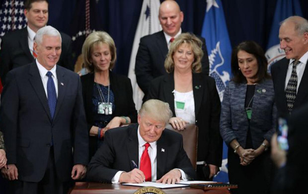 By Mark Hand for DC Media Group. Tens of thousands of protesters converged on the White House on Jan. 29 to denounce President Donald Trump’s executive order restricting residents from seven Muslim-dominant countries from entering the U.S.