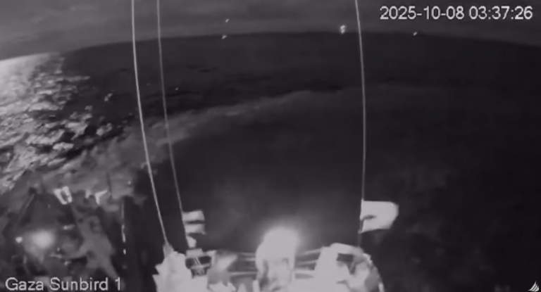 8 October 2025 – The Freedom Flotilla Coalition (FFC) and Thousand Madleens to Gaza (TMTG) confirm that three boat : Gaza Sunbirds, Alaa Al-Najajr, Anas Al-Sharif, have been attacked and illegally intercepted by the Israeli military at 04:34 at 120 nautical miles (220km) from Gaza. Sources so far indicate that the unarmed crew aboard, including doctors, journalists, and elected officials, have been abducted, as well as the vital aid worth over $110,000 USD in medicines, respiratory equipment, and nutritional supplies that were destined for Gaza’s starving hospitals. Their whereabouts remain unknown. “Israel has no legal authority to detain international volunteers aboard these ships,” David Heap, Canadian Boat to Gaza and Freedom Flotilla Coalition Steering Committee.
