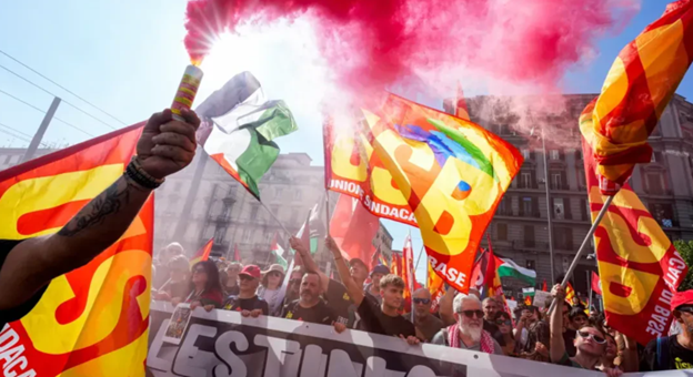 Italy is on general strike for the third time in less than three months, following a call by the grassroots union Unione Sindacale di Base (USB). Pickets, industrial actions, and demonstrations were organized in over 40 cities, with massive rallies demanding an end to rearmament plans and the war budget shaped by Giorgia Meloni’s government.