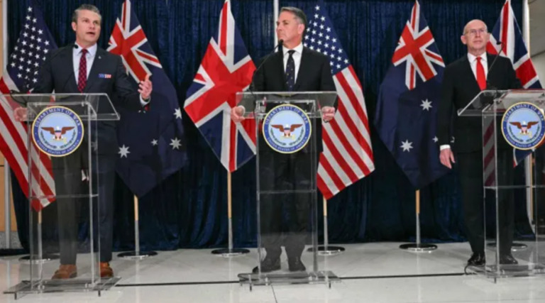 At a Pentagon meeting on Dec. 10, U.S. Secretary of War Pete Hegseth and his counterparts from Australia and Britain pledged to move “full steam ahead” with AUKUS, a trilateral military pact through which the United States is turning Australia into a forward operating base and nuclear-submarine hub for a potential war on China.