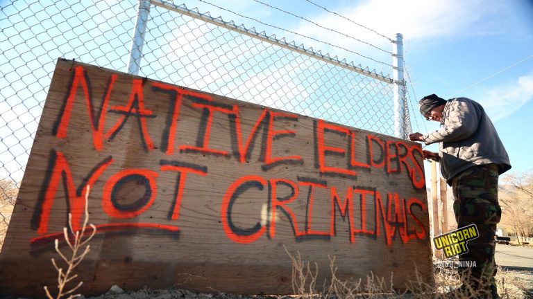 As part of what the council called a “rehabilitation” effort, workers began clearing residents’ property in the spring of 2020. The work was stalled pending an ongoing court case that resulted in a temporary restraining order against the contractors, but when the order expired, crews returned in an attempt to remove the remaining homes. Dick was the first of at least 11 residents facing eviction, according to a construction plan circulated among colony residents last year. But others were paying attention. Shortly after contractors returned in November, supporters arrived at the Winnemucca Indian Colony to prevent workers from removing more homes. After they successfully stopped work in an initial confrontation with contractors and hired security guards, supporters told Unicorn Riot they knew their work had just begun.