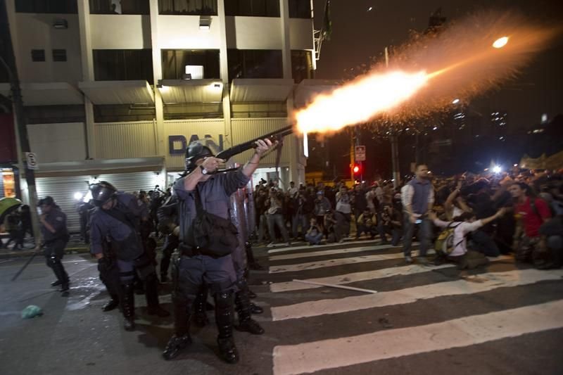 It was 5 pm. Workers, students, senior citizens and families conquered the streets, little by little, in a manifestation of their civil rights to protest freely, acting against the raise of public transportation fares in São Paulo. All together, there were 15000 people – something quite rare in a country not used to expressing on the street, legacy from its 21 years of civil-military dictatorship. The mass media tried delegitimizing the mobilization from its beginning, calling protestors “vandals” and “barbarians”. In response, on Wednesday, June 13th, people claimed for no violence and, instead, were shot with rubber bullets, bombed with tearing gas and hit violently with batons by the MP - Military Police and Rota, special police subordinated to the MP.