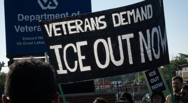 “I wanna ask you veterans, I wanna ask you workers, for your solidarity as we demonstrate, as we organize, and we clarify the principles of this country, that it is freedom, it is democracy, it is solidarity that moves us, not disunity, not exclusion, and certainly not ICE,” said Stacey Davis Gates