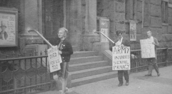 They distributed leaflets which read: “We protest the military policy of defaming sexual ‘deviates’ and ‘offenders’ by giving them less-than-honorable discharges, and revealing draft information on private sexual matters to federal and state agencies.” Many people’s lives and livelihoods were destroyed by this practice.
