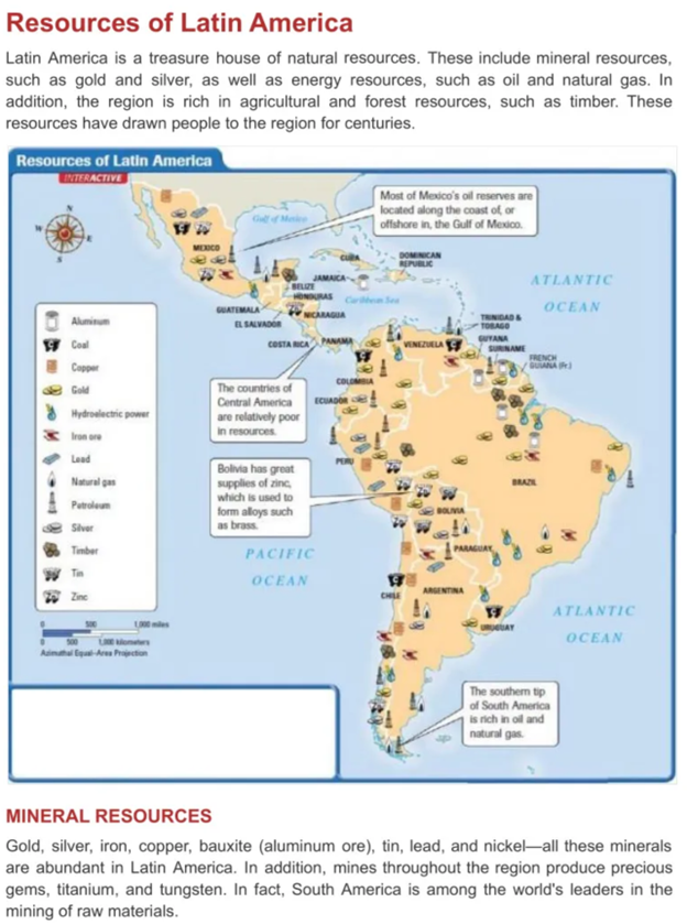 One, the US wants to exploit Latin America’s plentiful natural resources, including oil and natural gas; gold, iron ore, and other minerals; agriculture; and fresh water. (As the climate crisis worsens, water will become increasingly important.)
