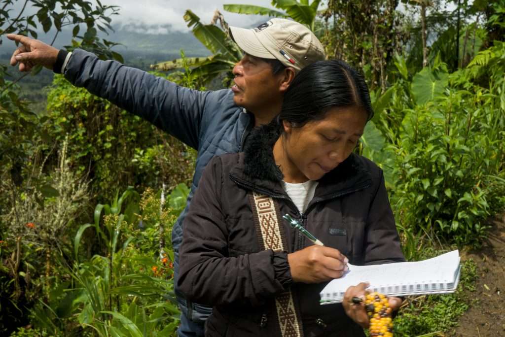 Above photo: An Inga Indigenous couple take notes on different varieties of maize within a traditional chagra in the Sibundoy Valley of Putumayo, Colombia. R.Glass.