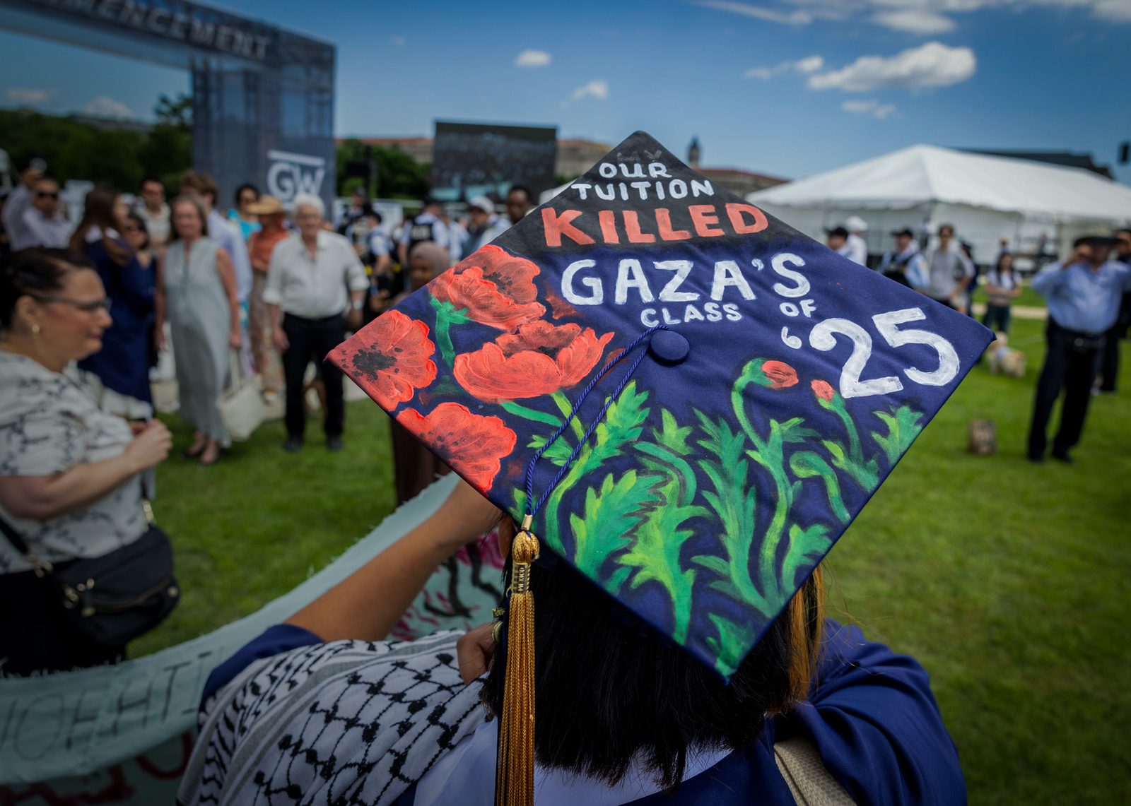 Above photo: Dozens of George Washington University students walk out during a May 18 commencement address on the National Mall in Washington, D.C., calling for divestment from companies supporting Israel’s military. Probal Rashid/LightRocket/ Getty Images.