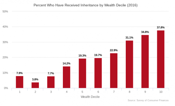 Nonetheless, as you would expect, wealthier families are much more likely to have inherited wealth. Additionally, the wealthier a family is, the more they have generally inherited.