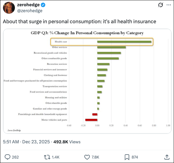 According to a report released today by the U.S. Department of Commerce, economic growth swelled in the third quarter of 2025. While that’s theoretically good news, an ever-larger share of that consumer spending is devoted to health care costs: Over the previous three months, expenditures on health care increased more than on any other goods or services. Health care spending, in fact, contributed more to the country’s gross domestic product growth than any other personal expenses.