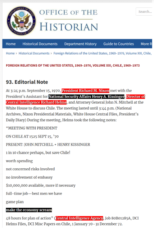 They convened to discuss the election of socialist Salvador Allende as the president of Chile (who went on to nationalize some of the world’s largest reserves of copper, angering US corporations and their representatives in Washington — just as Chávez would do with Venezuela’s oil a few decades later).