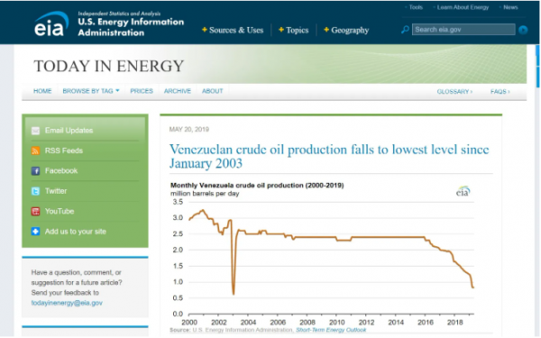 The EIA admitted that one of the main reasons for this was the “U.S. sanctions directed at Venezuela’s energy sector and PdVSA”.