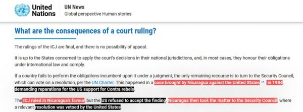 However, Washington ignored the ICJ ruling and vetoed a UN Security Council resolution that demanded it be respected.