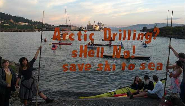 Last weekend, hundreds of activists in kayaks swarmed Elliott Bay to protest Shell’s plans to drill for oil in the Arctic. The protest was dubbed the “Paddle in Seattle.”