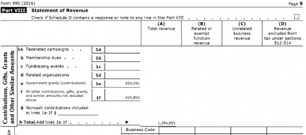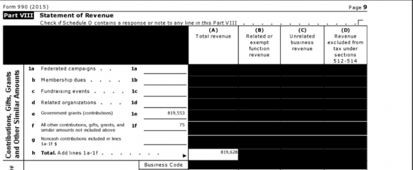 Publicly available 990 IRS filing forms reviewed by the Grayzone show that the organization is substantially funded by government grants. In fact, in 2015 virtually all of the organization’s revenue came from government grants.