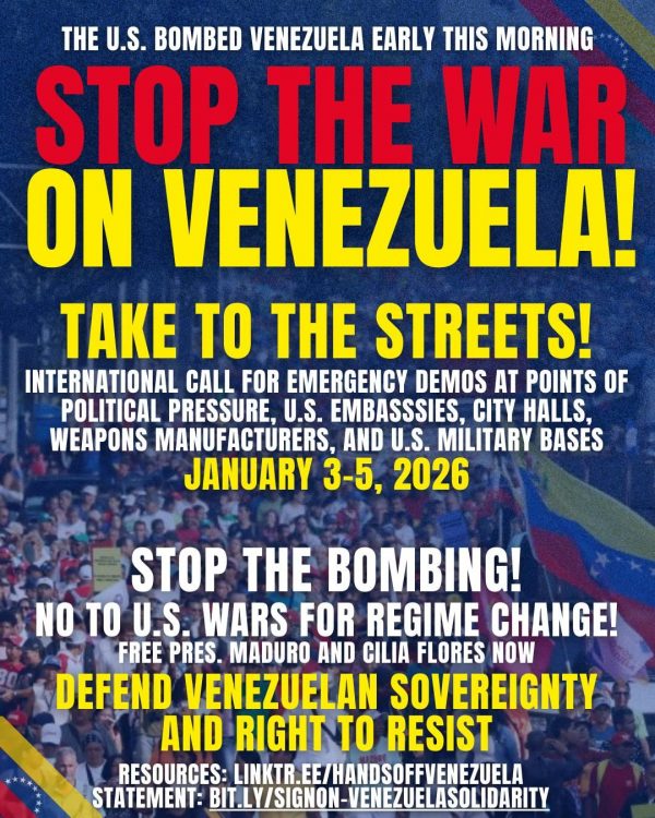 ALBA Movements, a network of social movements in Latin America and the Caribbean, called the attacks a “criminal act of war”, “in direct violation of the Charter of the United Nations, which threatens peace, sovereignty, and stability throughout Latin America and the Caribbean. This aggression has a clear objective: the plundering of Venezuela’s strategic resources, especially oil and gold, through a colonial policy of military intervention and regime change.” The network also called on people across the world to speak out against the attacks and mobilize in front of US embassies and consulates.