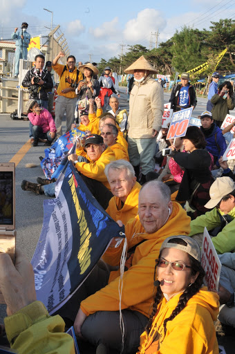 We were up early yesterday morning and on the road to Camp Schwab where there was a 6:00 am gate blockage against the early construction work on the proposed Marine airfield twin-runways that will be plunked down in pristine Oura Bay.
