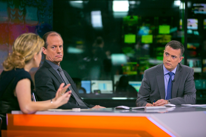 Above: US Whistleblowers Jesselyn Radack, Thomas Andrews Drake, Ray McGovern and Coleen Rowley (L to R) and presenter Kevin Owen (C) in RT’s studio in Moscow (RT photo / Semyon Khorunzhy)