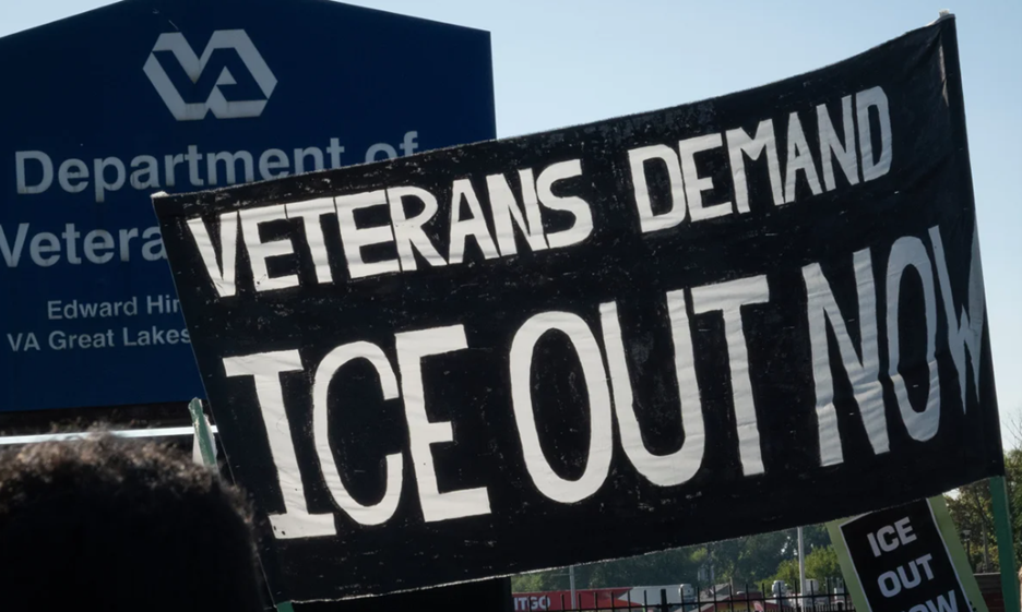 Above photo: Veterans and healthcare workers protest outside the Edward Hines Jr VA hospital against ICE’s use of the facility, on 15 September, in Hines, Illinois. Scott Olson/Getty Images.