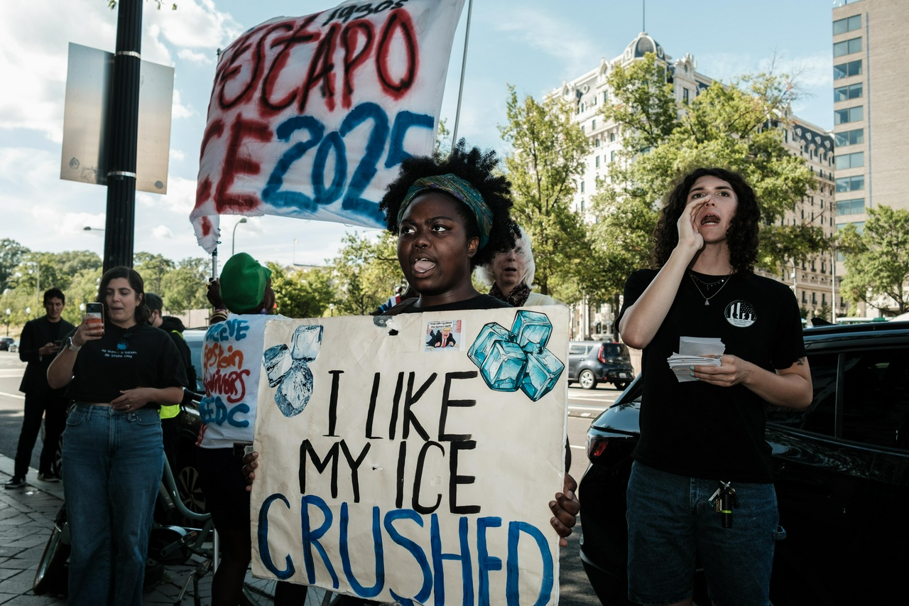 “I get it from both sides. I am Black and an immigrant,” stated a protester who has become a regular figure at DCAT actions with a “Fuck ICE/Gestapo ICE 2025” banner mounted on poles. “I was scared at first, but then I realized I have to fight for my people who cannot. I will not be silent and allow the Trump occupation to do whatever it wants!”