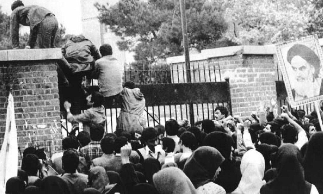 Above photo: Iranian students crowd the U.S. Embassy in Tehran (November 4, 1979). Wikipedia.