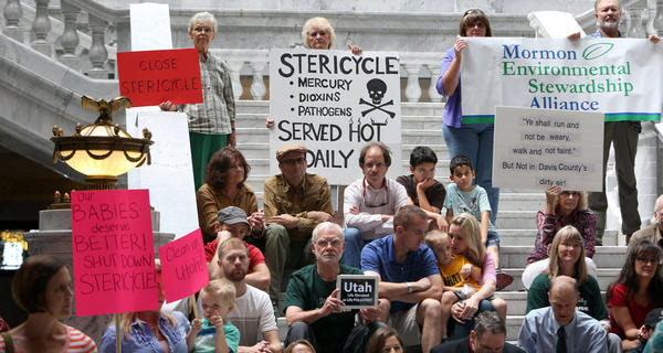 Above photo: North Salt Lake residents and clean air advocates rally to demand that Gov. Gary Herbert shut down Stericycle’s incinerator on Wednesday, Sept. 11, 2013. Stericycle is a biohazard waste disposal company located in North Salt Lake. Laura Seitz, Deseret News