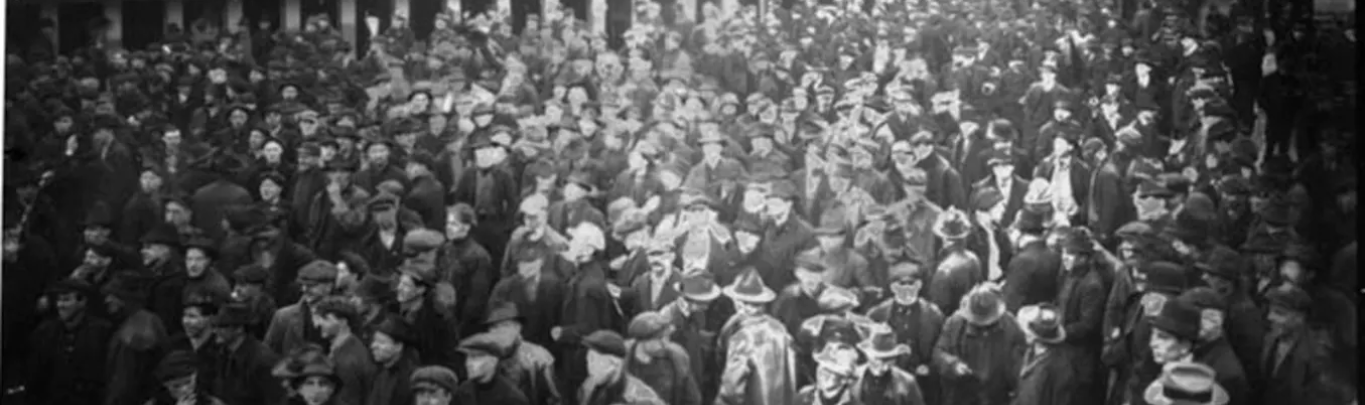 Above Photo: Seattle shipyard workers in 1919 as they walk off the job. Museum of History & Industry, CC BY