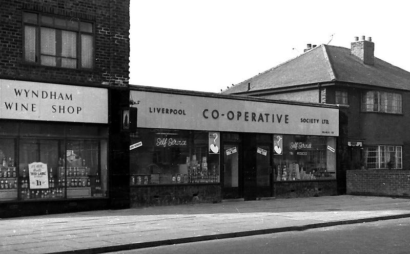 Above photo: “Liverpool Co-operative Society, Branch128, Pilch Lane, Liverpool. 1955.“ harrypope / Creative Commons.